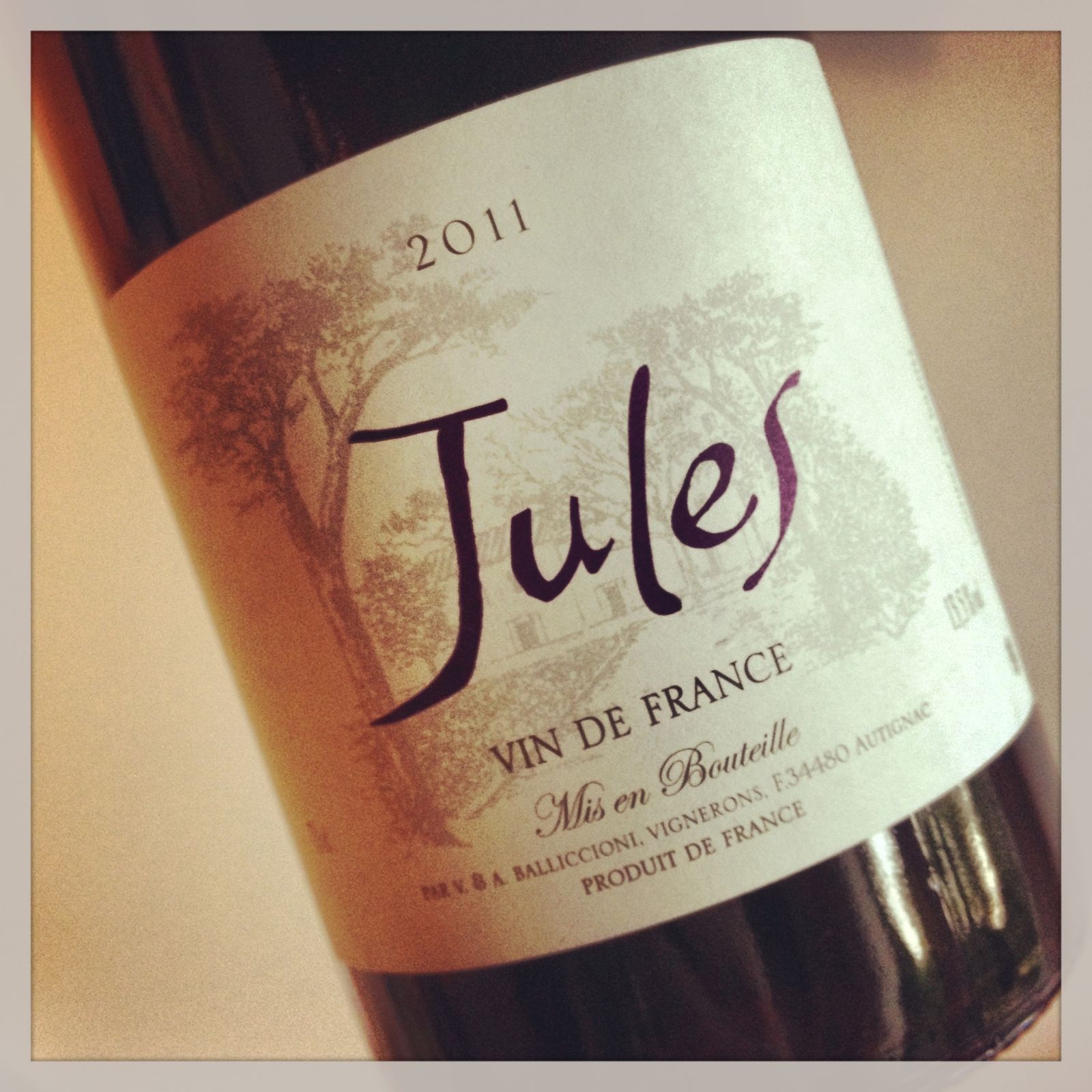 Jules : un vin de France issu majoritairement du cépage aramon, avec un peu de carignan et de syrah. Les vignes sont issues de terroirs argilo-calcaires (plutot sur le sud du village, le nord du village laissant la part belle aux terroirs de schistes classés en cru Faugères), et les rendements de 40 hl/ha.